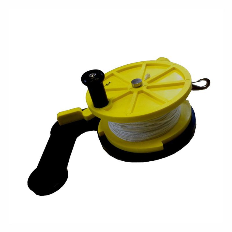 H2O Action reel AKA the legendary multi-purpose Dive Master Reel. This Large dive reel was designed and made by McMahon Engineering Ltd in the early 1980’s. The reel itself is extremely easy to use and robust when used correctly. Can be easily maintained, and extremely easy to replace parts when necessary. The main parts of the reel are made from a polypropylene material and ABS plastic and fixed together with marine quality stainless steel axle bolts and A4 stainless steel fixings.